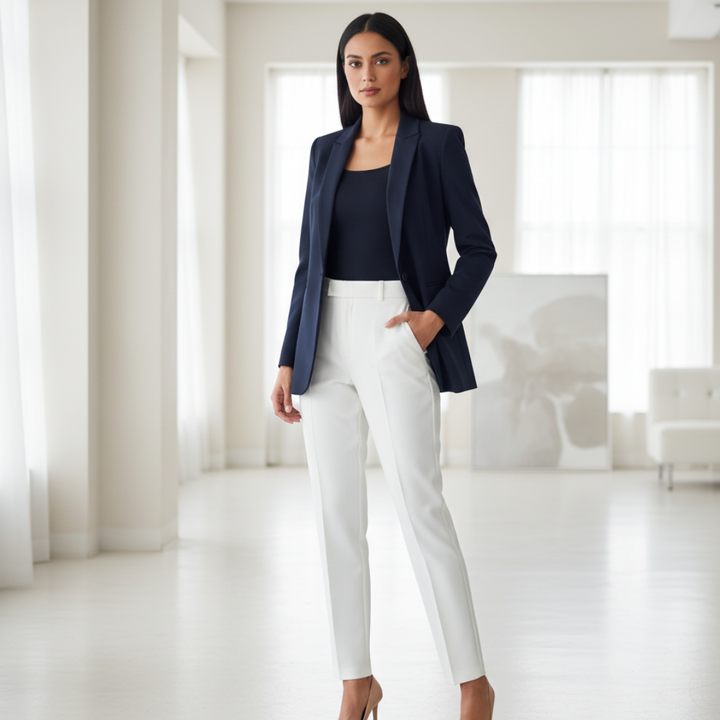 Découvrez le blazer "City", l'alternative chic et moderne à la veste de tailleur traditionnelle. Sa coupe ouverte et fluide lui donne une allure décontractée, tandis que sa couleur bleu marine profond s'associe à merveille avec un jean blanc, un t-shirt simple ou une robe imprimée.