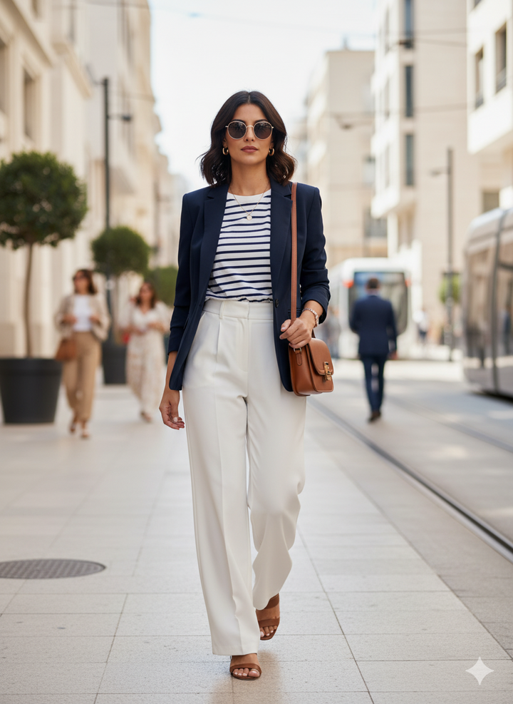 Pour une allure casual-chic : Portez-le sur une marinière, un t-shirt blanc et un jean brut.