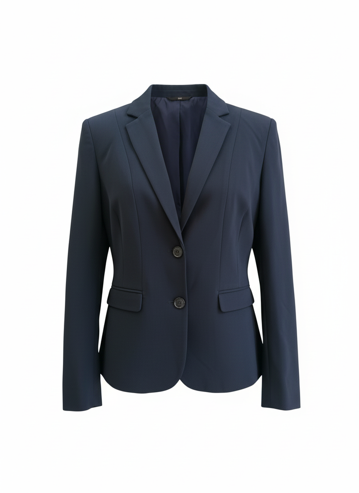 Sa coupe classique, légèrement cintrée, est pensée pour sublimer toutes les silhouettes. Le tissu d'un bleu marine profond et riche offre un tombé parfait et une sensation de confort. Doté d'un col à revers cranté et de poches à rabat discrètes, il incarne l'essence du chic minimaliste. Que ce soit pour une réunion, un déjeuner en ville ou pour rehausser une tenue du week-end, il sera toujours le choix parfait.
