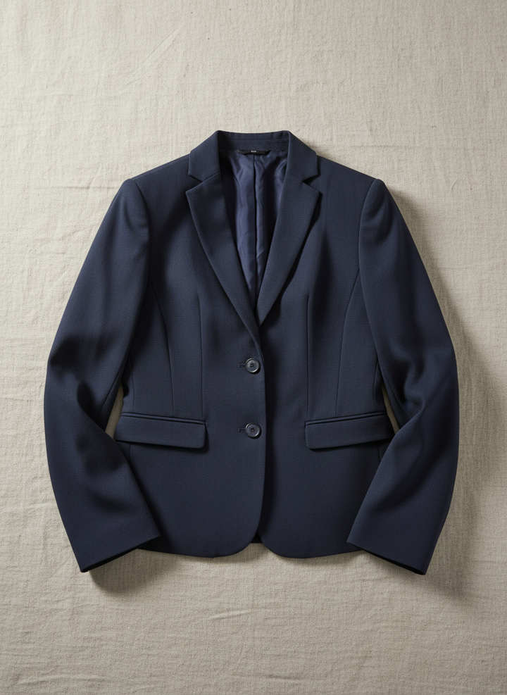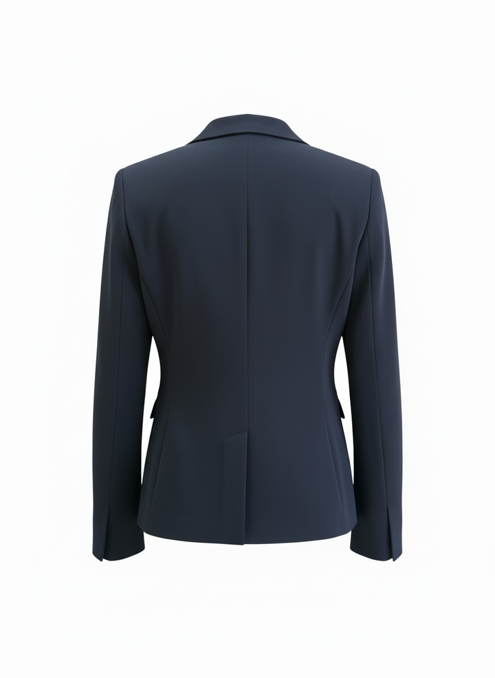 L'alternative parfaite au noir, notre blazer "L'Incontournable" en bleu marine est un symbole d'élégance discrète et de polyvalence infinie. C'est la pièce fondamentale de votre garde-robe, garantissant une allure toujours impeccable.