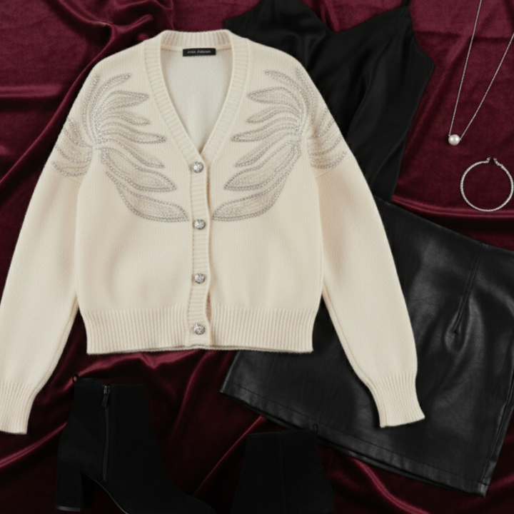 Cardigan Orné "Les Ailes Scintillantes" - Maille Douce - Velvet