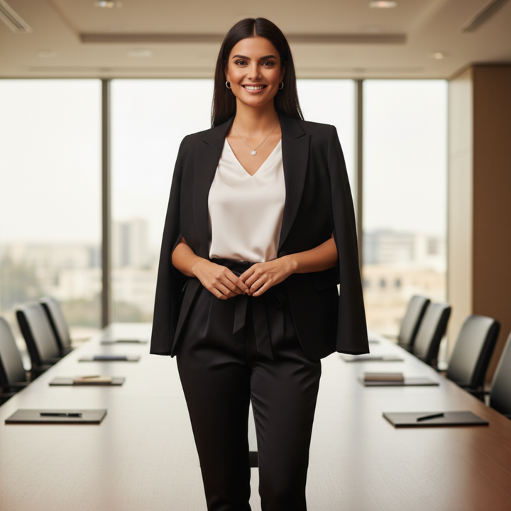 Pour un look urban-chic : Avec un caraco simple, un blazer structuré comme notre modèle "L'Incontournable", et des mocassins.