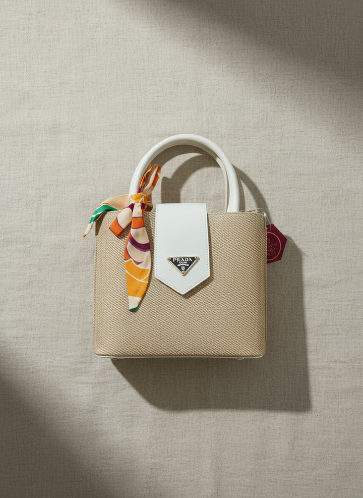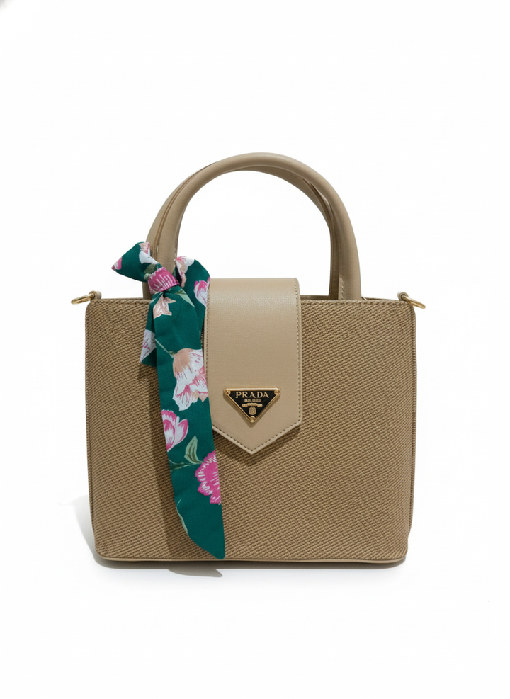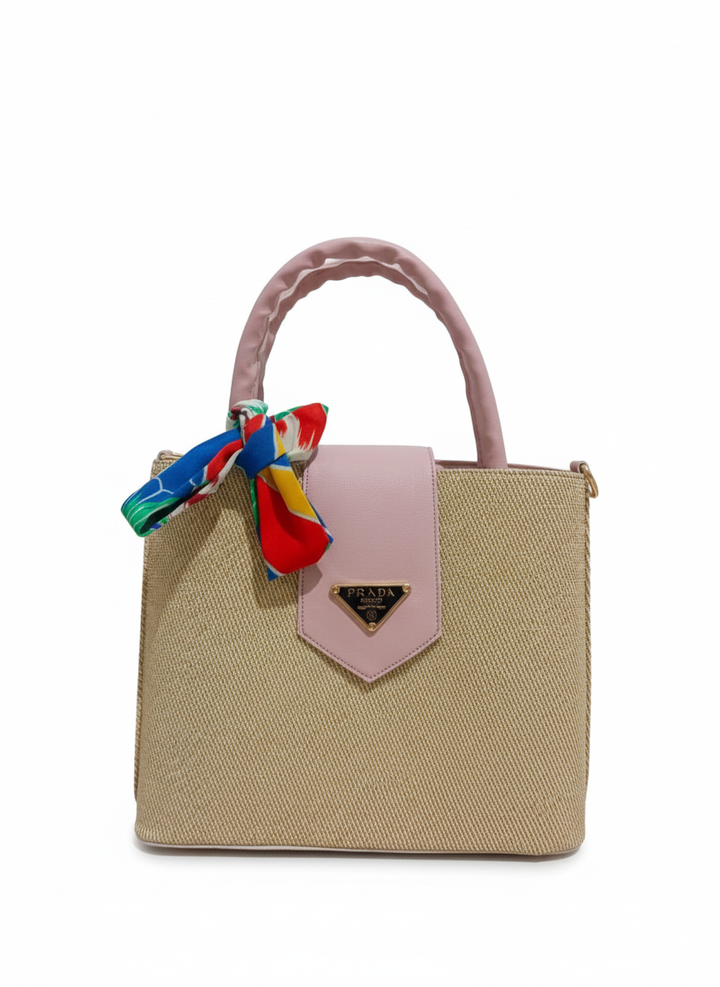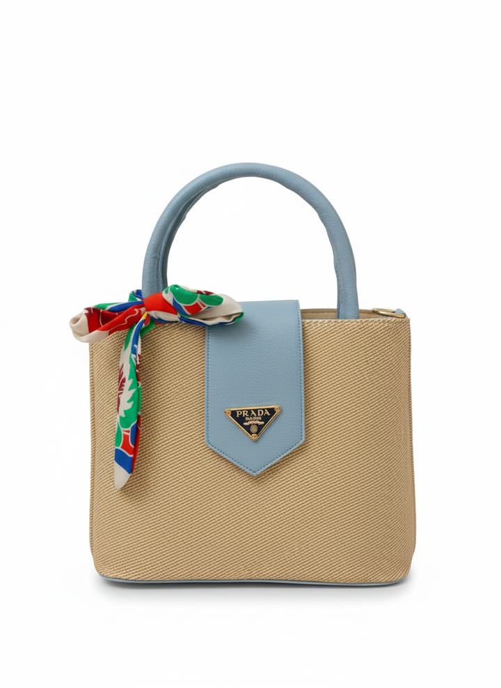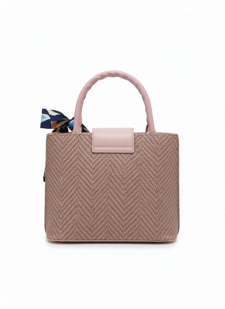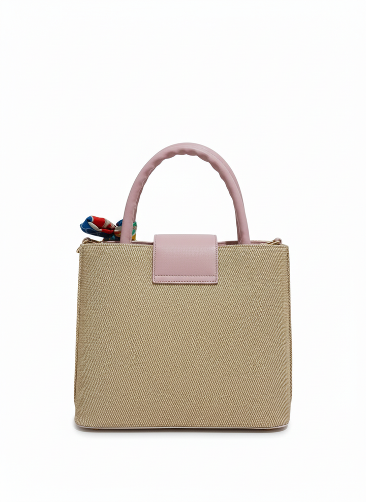 - Matières : Tissage texturé effet raphia + Similicuir premium