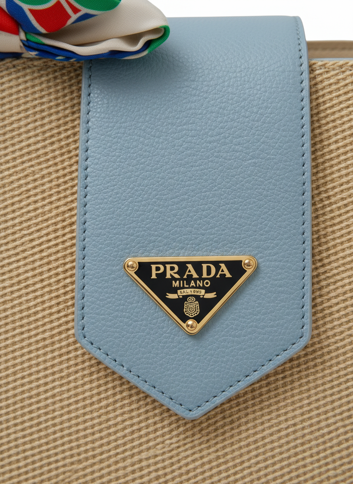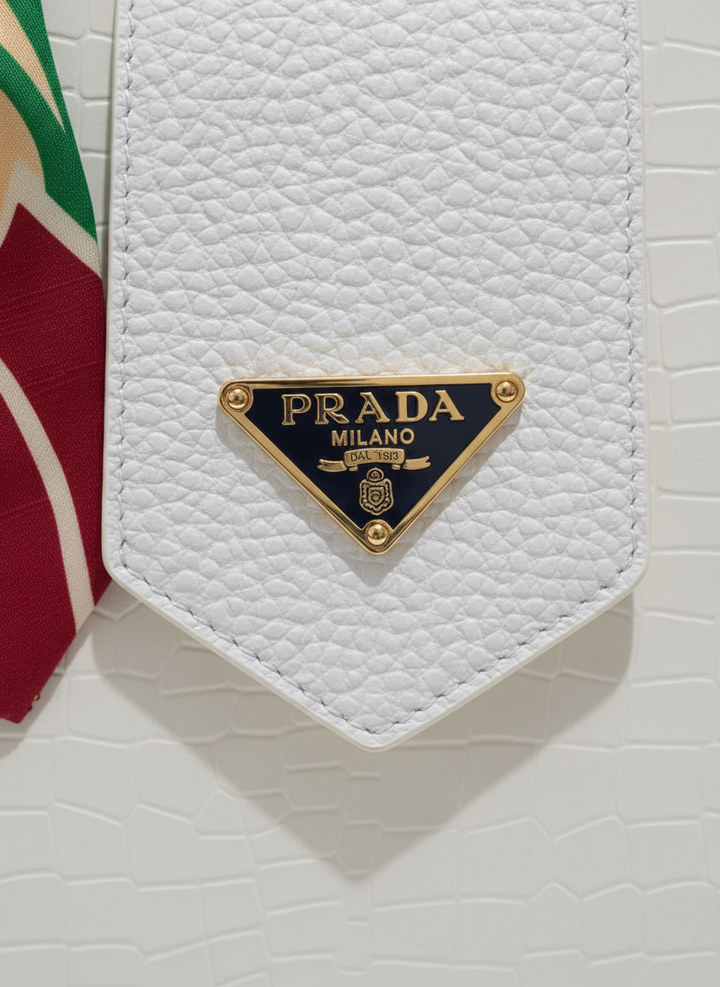 - Plaque logo triangulaire dorée "PRADA MILANO"