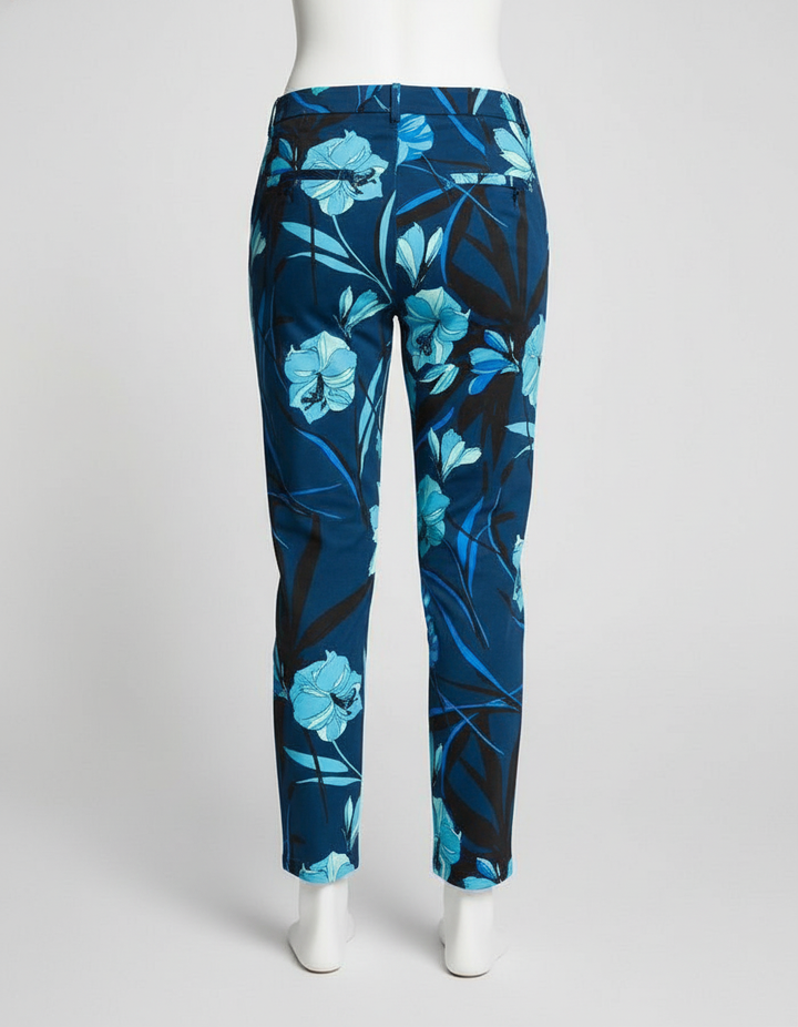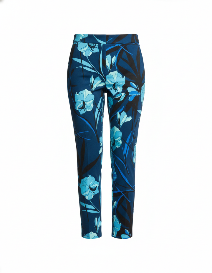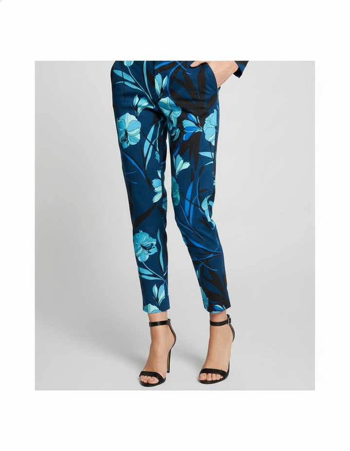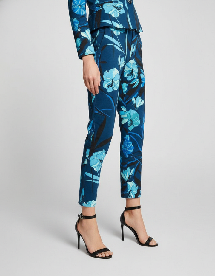Tailleur Imprimé Floral Marine - Blazer Cintrée & Pantalon Cigarette